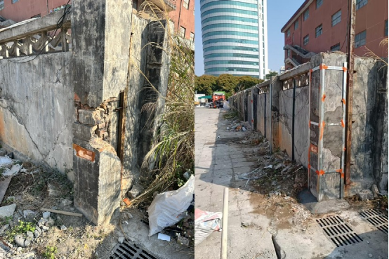 ③充電站圍墻破裂修補前?????????????? 充電站圍墻破裂修補后