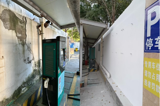 ③充電站圍墻破裂修補前 充電站圍墻破裂修補后